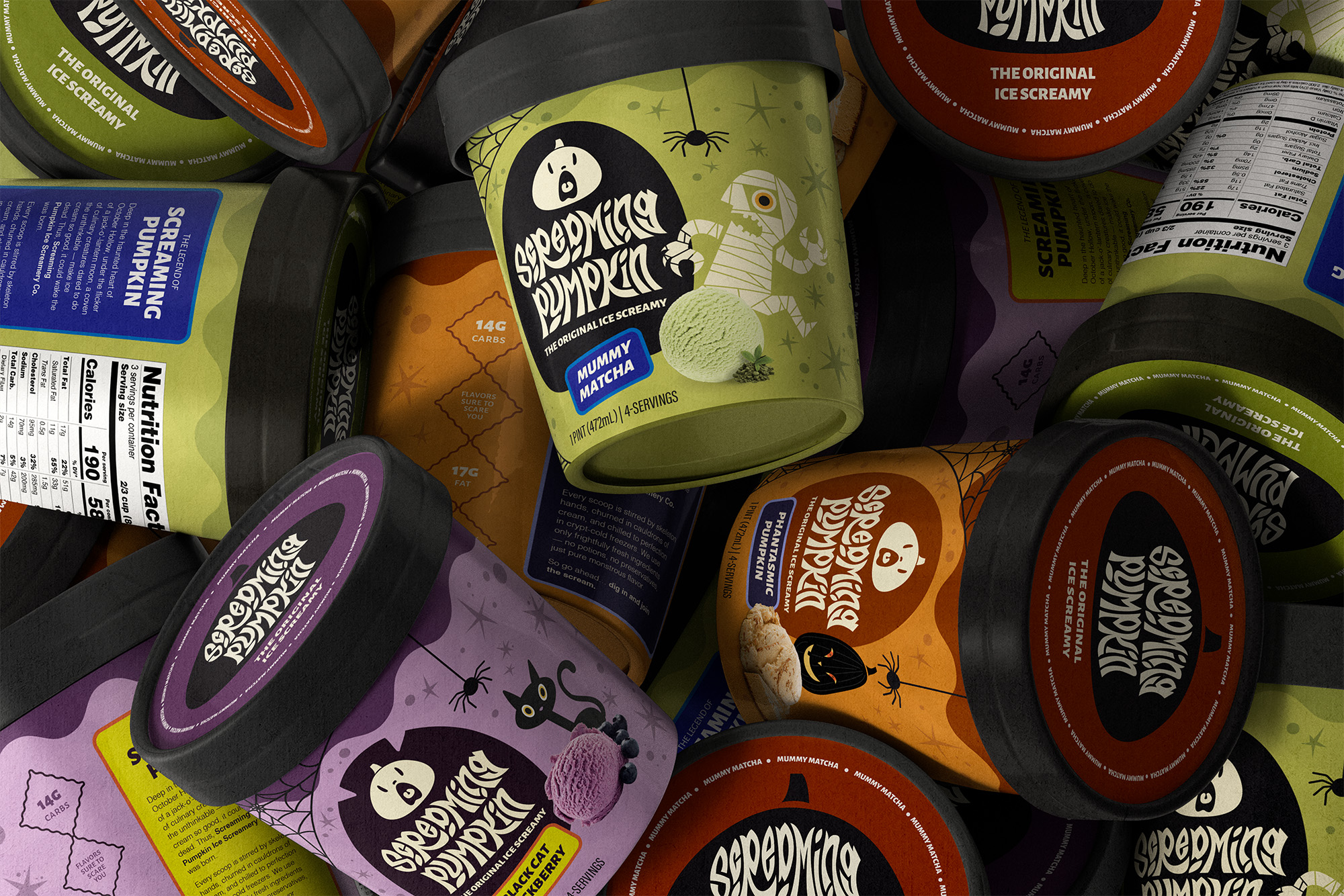 Screaming Pumpkin Ice Screamery is a whimsical, Halloween-inspired ice cream concept that celebrates the spooky season all year long. Designed as a personal passion project, the brand combines the nostalgia of childhood Halloween fun with a contemporary craft aesthetic — playful, eerie, and full of flavor. Each pint is meant to feel like a collector’s item from a world where monsters make their own ice cream.