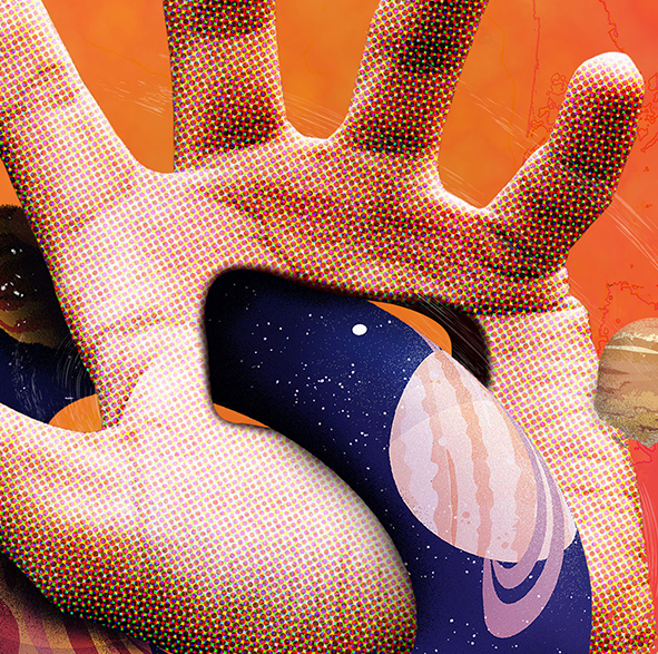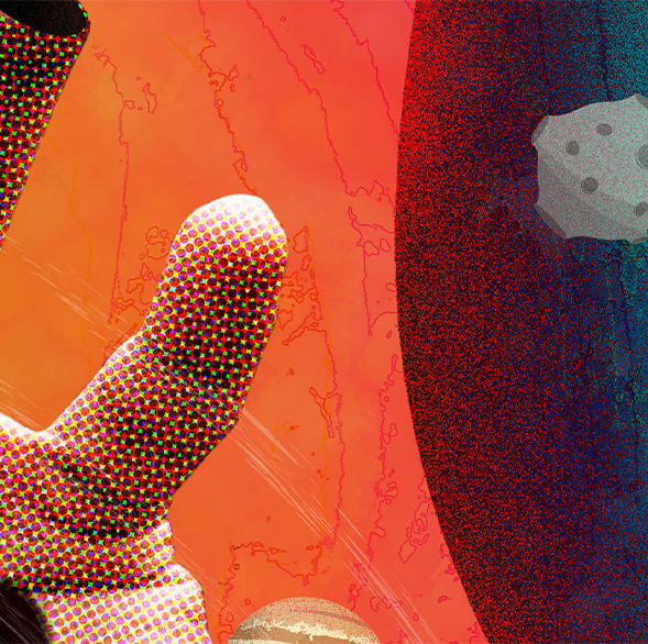 Cosmos is an independent poster created for a personal series and book project, a collection of surreal space inspired visuals I genuinely love exploring. Blending retro sci fi influence with modern collage techniques, the piece centers on a distorted hand reaching through a cosmic loop, symbolizing the tension between human curiosity and the vast unknown. Designed to feel both tactile and otherworldly, the poster uses bold color, texture, and visual distortion to transform a simple gesture into a portal, inviting viewers deeper into the universe this series seeks to build.