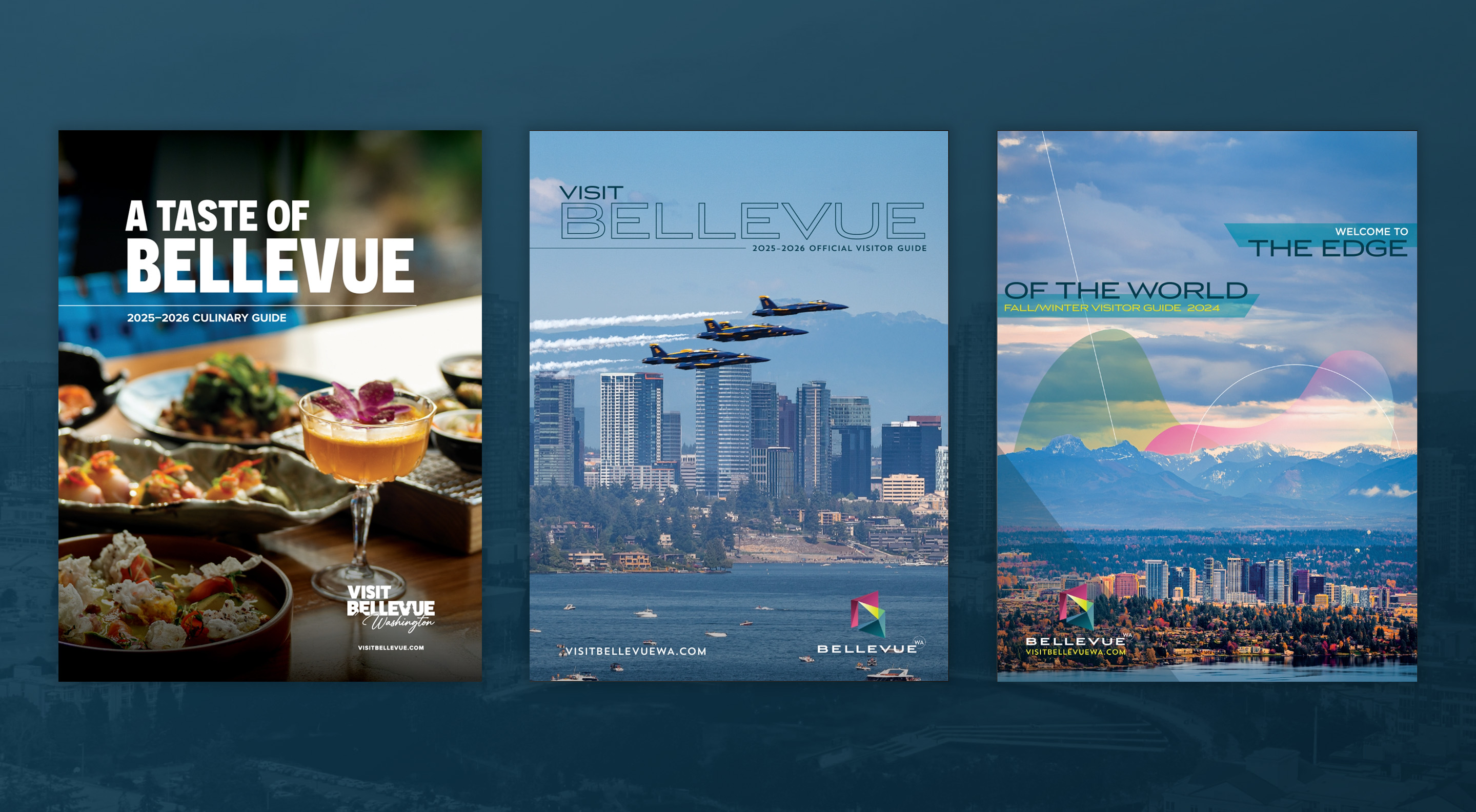 These guides are designed to help visitors explore Bellevue. They are distributed for free to hotel partners in exchange for advertising their properties. The guides support local businesses and strengthen the overall Bellevue brand.
